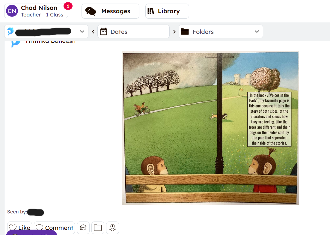 Students can post their work to their Seesaw account where their families are connected and can view the work they submit. It is also used as a direct form of communication to parents.